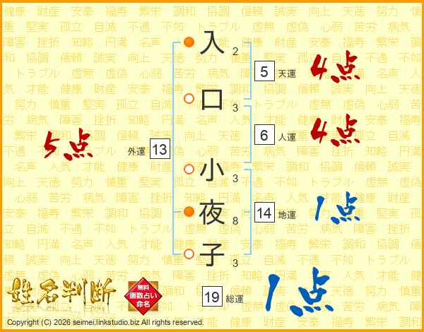 入(2画)口(3画) 小(3画)夜(8画)子(3画)