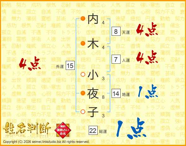 内(4画)木(4画) 小(3画)夜(8画)子(3画)