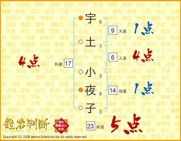 宇土小夜子さんの総運は23画の5点!