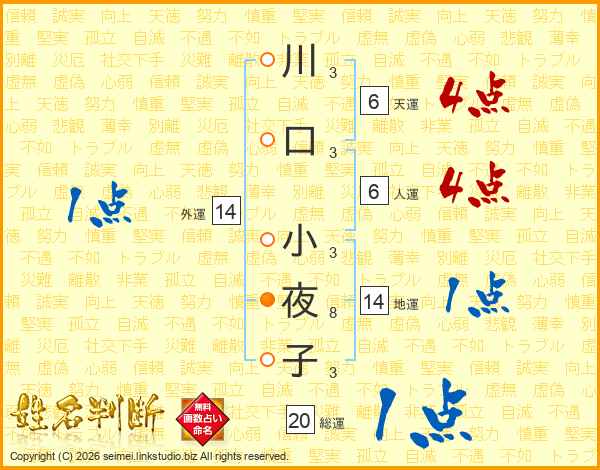 川口小夜子さんの外運は14画の1点!