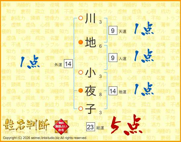 川地小夜子さんの総運は23画の5点!