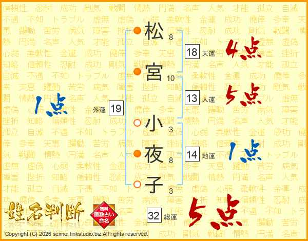 松宮小夜子さんの総運は32画の5点!
