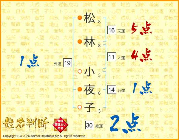 松林小夜子さんの総運は30画の2点!