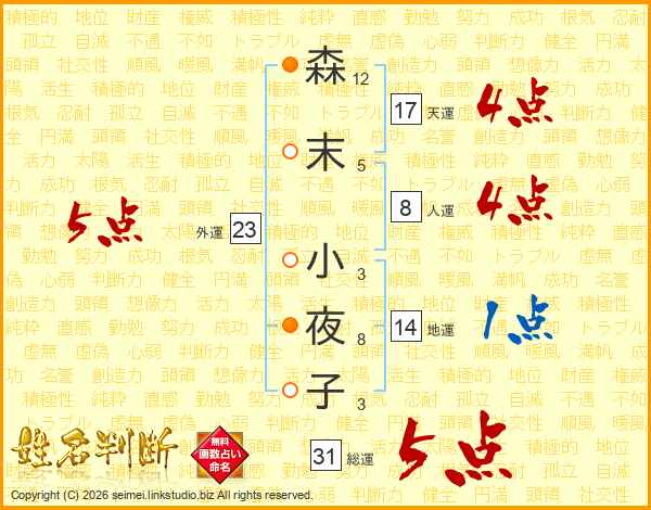 森末小夜子さんの総運は31画の5点!