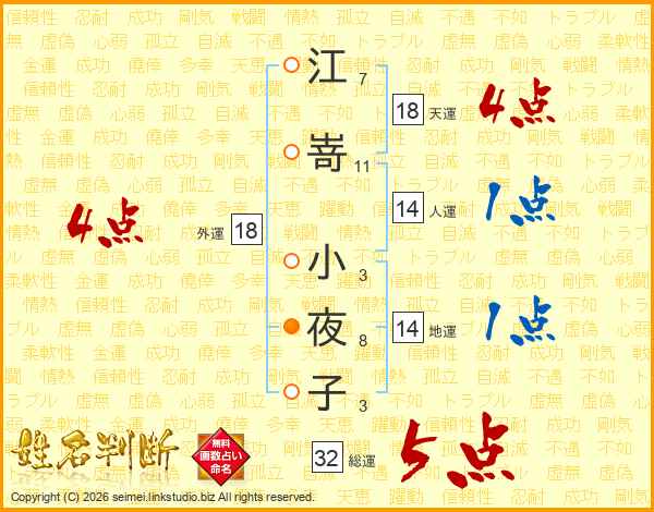 江嵜小夜子さんの総運は32画の5点!