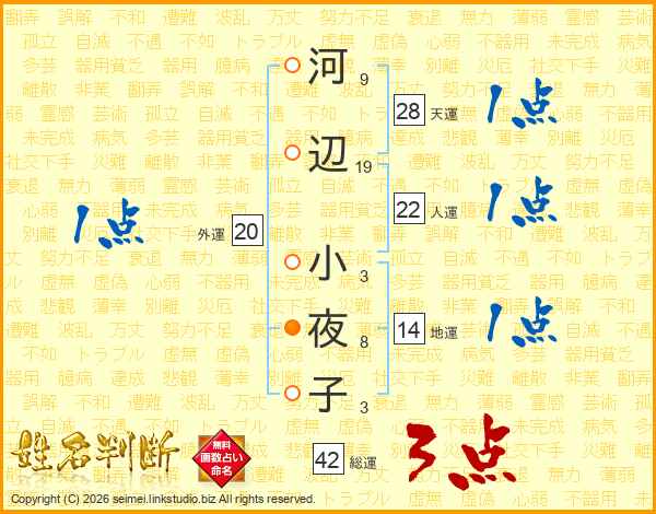 河辺小夜子さんの総運は42画の3点!