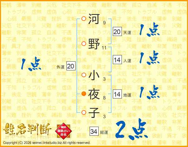 河野小夜子さんの天運は20画の1点!