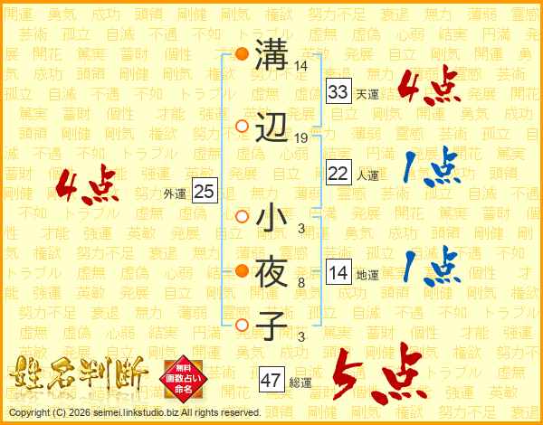 溝辺小夜子さんの総運は47画の5点!