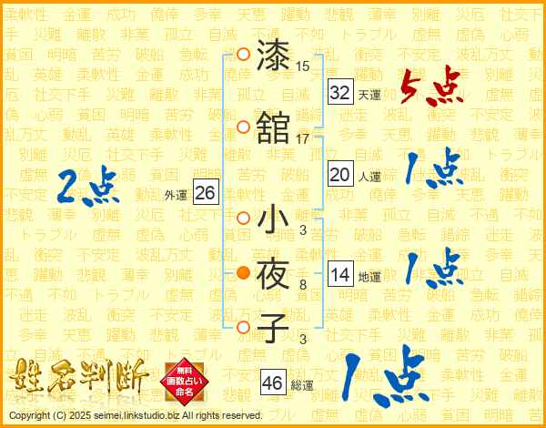 漆舘小夜子さんの総運は46画の1点!