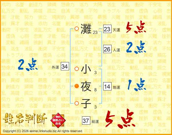 灘小夜子さんの総運は37画の5点!