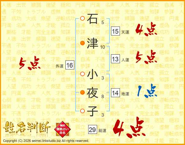 石津小夜子さんの総運は29画の4点!