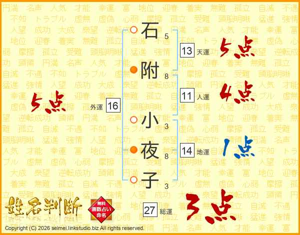 石附小夜子さんの総運は27画の3点!