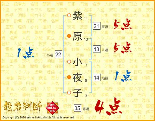 紫(11画)原(10画) 小(3画)夜(8画)子(3画)