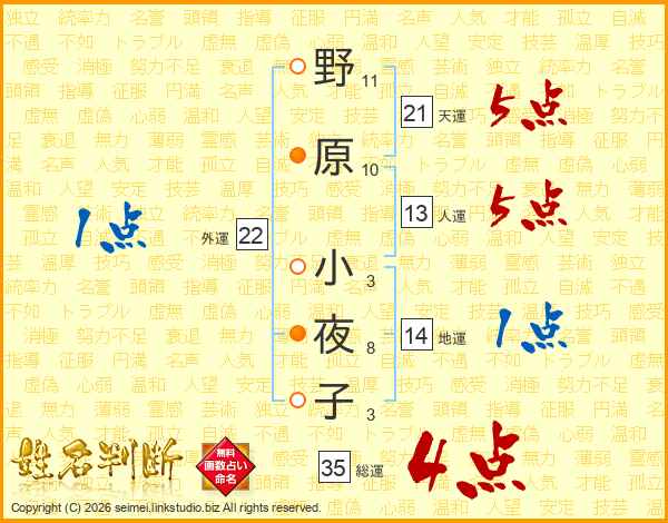 野原小夜子さんの総運は35画の4点!