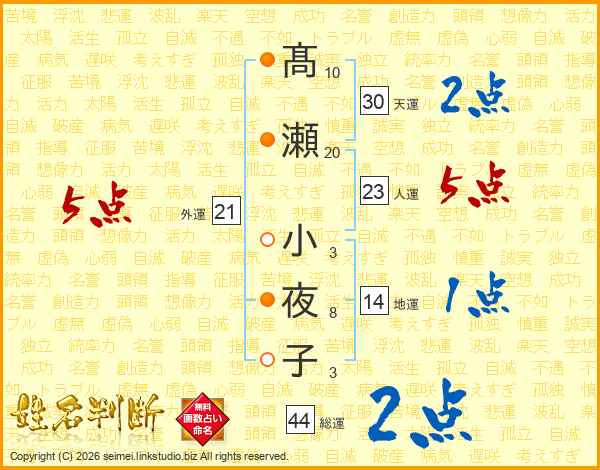 髙瀬小夜子さんの総運は44画の2点!