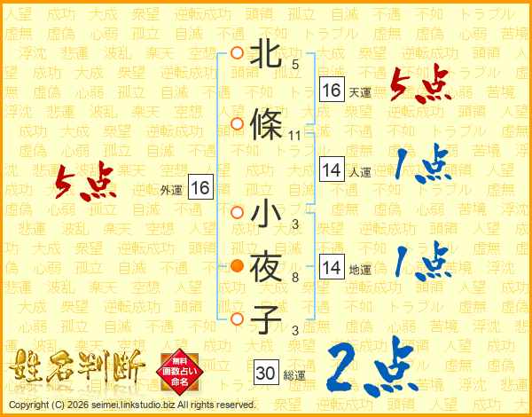 北條小夜子さんの総運は30画の2点