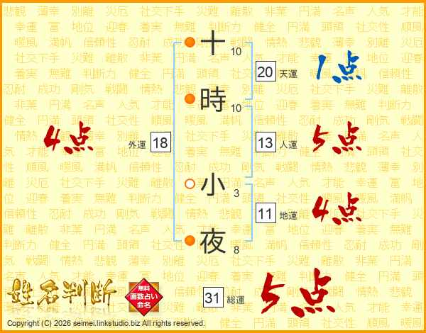 十時小夜さんの総運は31画の5点!