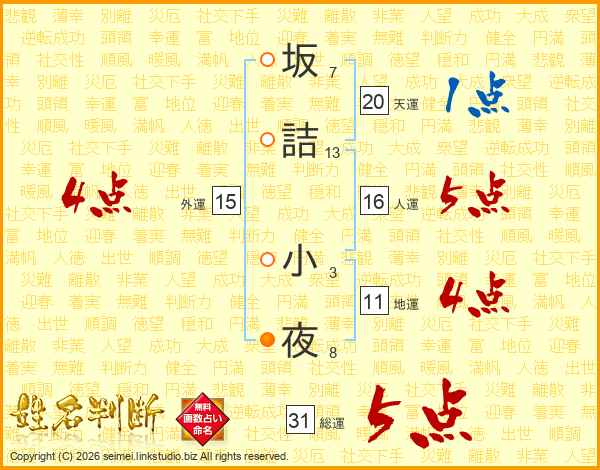 坂詰小夜さんの総運は31画の5点!