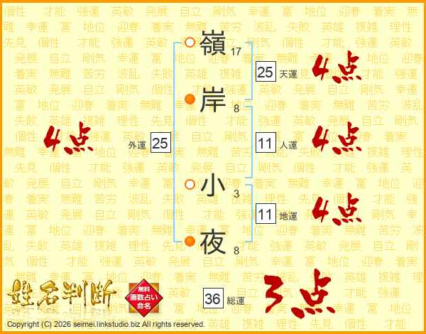 嶺岸小夜さんの人運は11画の4点!