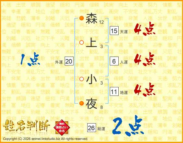 森上小夜さんの地運は11画の4点!