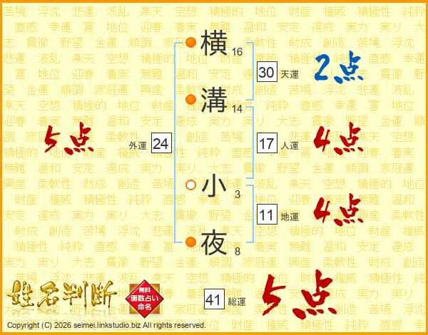 横溝小夜さんの総運は41画の5点!