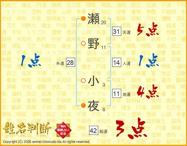 瀬野小夜さんの地運は11画の4点!