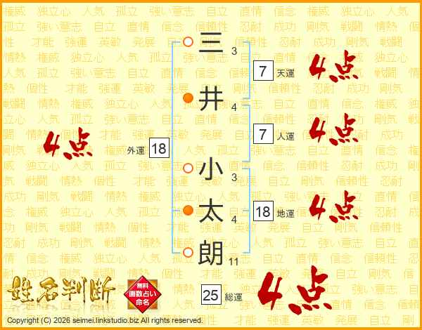 三井小太朗さんの人運は7画の4点!
