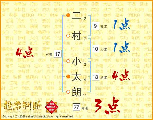 二村小太朗さんの総運は27画の3点!