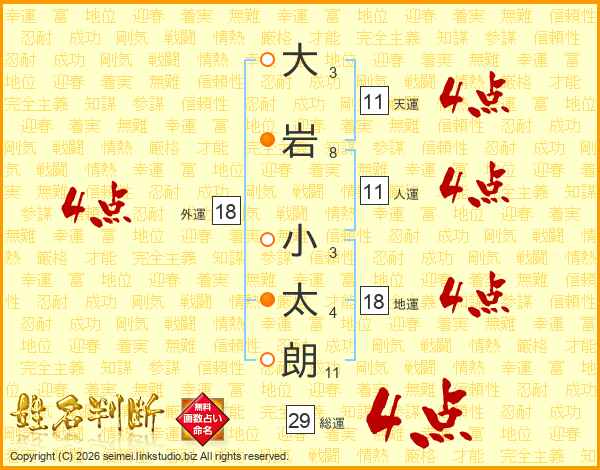 大岩小太朗さんの総運は29画の4点!
