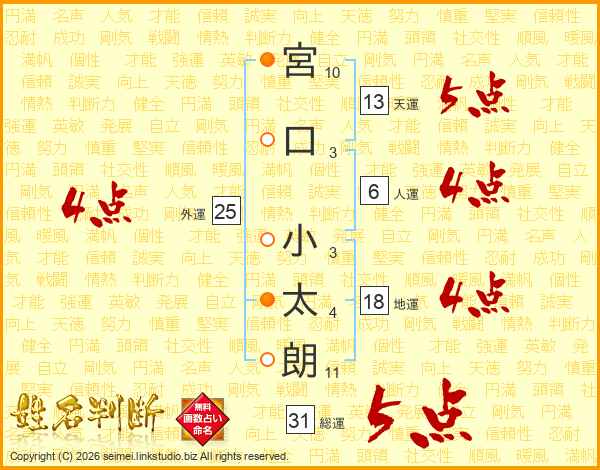 宮口小太朗さんの総運は31画の5点!