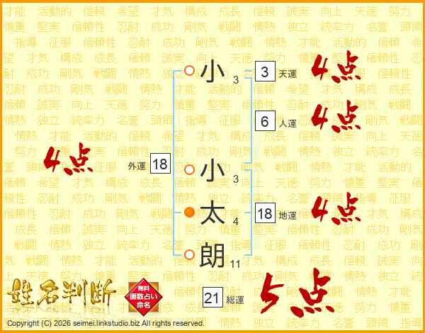 小小太朗さんの総運は21画の5点!