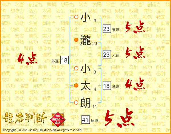 小瀧小太朗さんの総運は41画の5点!