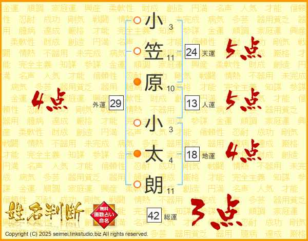 小笠原小太朗さんの総運は42画の3点!