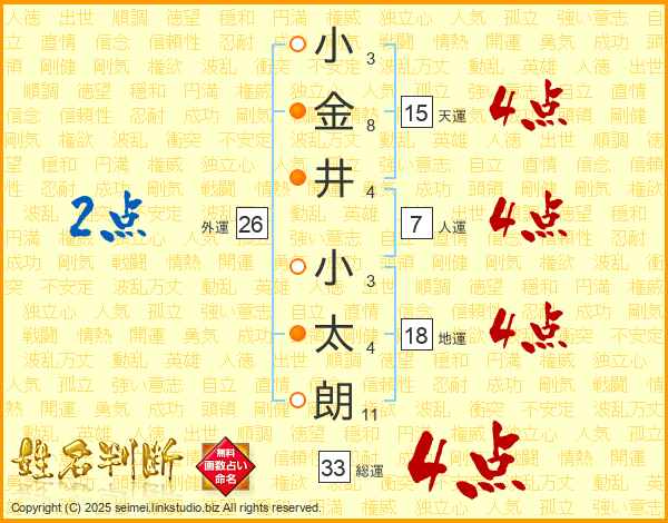 小金井小太朗さんの総運は33画の4点!