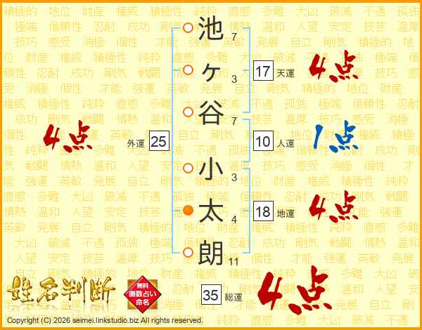 池ヶ谷小太朗さんの総運は35画の4点!