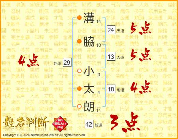 溝(14画)脇(10画) 小(3画)太(4画)朗(11画)