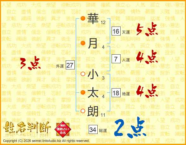 華月小太朗さんの総運は34画の2点!
