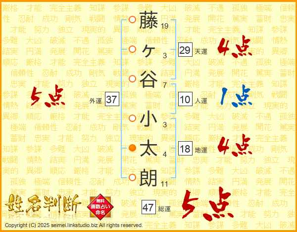 藤ヶ谷小太朗さんの総運は47画の5点!