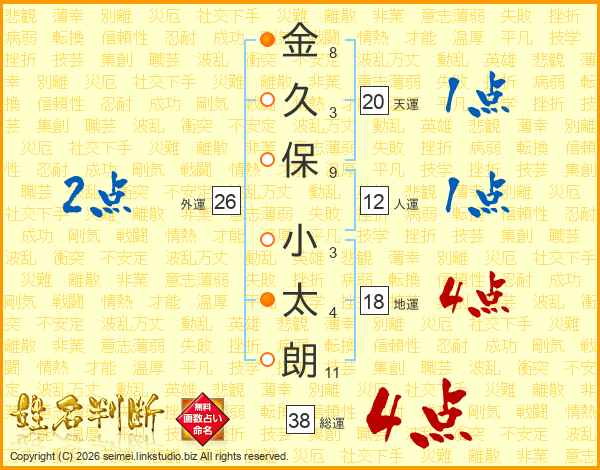 金久保小太朗さんの総運は38画の4点!