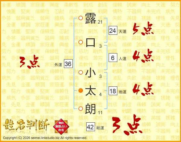 露口小太朗さんの総運は42画の3点!
