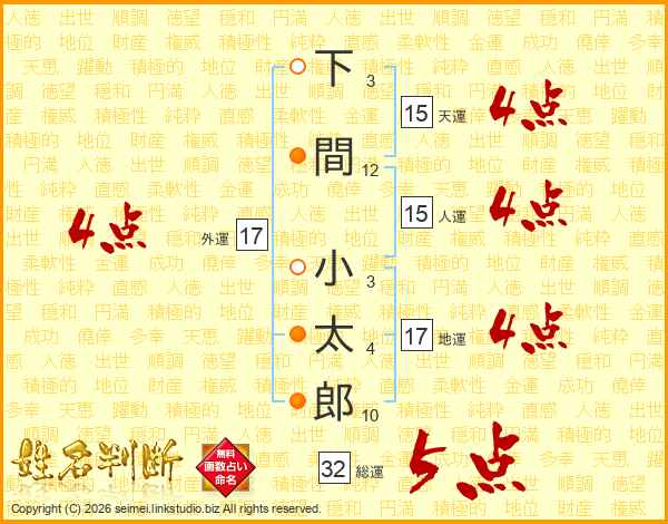 下(3画)間(12画) 小(3画)太(4画)郎(10画)