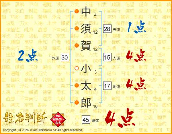 中須賀小太郎さんの総運は45画の4点!