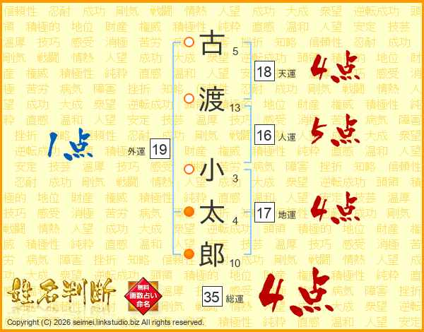 古渡小太郎さんの天運は18画の4点!