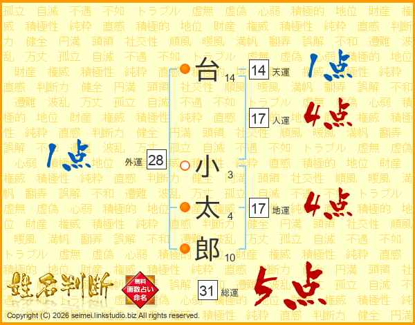 台小太郎さんの総運は31画の5点!