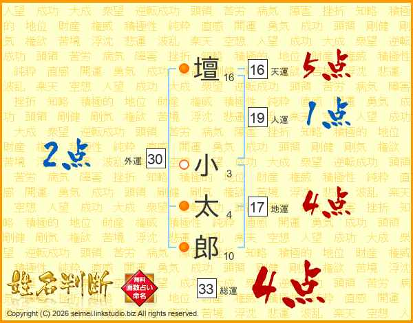 壇小太郎さんの総運は33画の4点!
