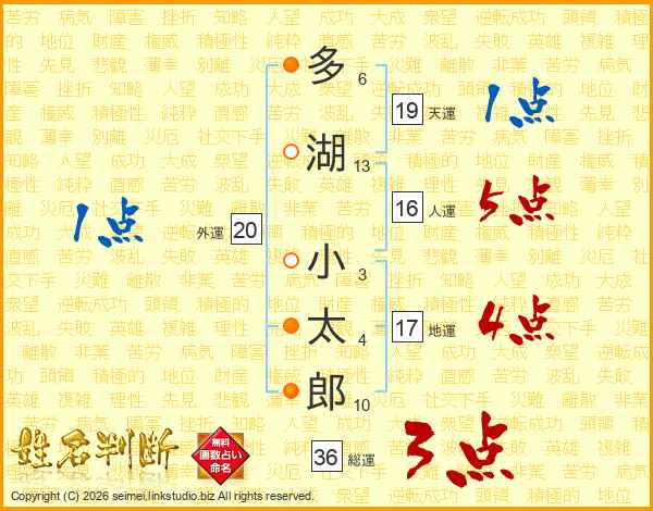 多(6画)湖(13画) 小(3画)太(4画)郎(10画)
