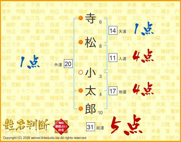 寺松小太郎さんの天運は14画の1点!