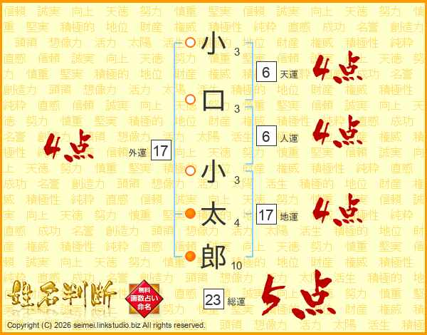 小口小太郎さんの総運は23画の5点!