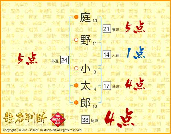 庭野小太郎さんの総運は38画の4点!