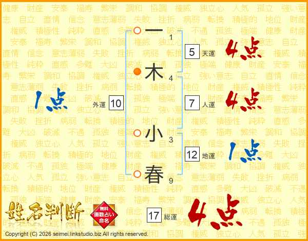 一木小春さんの総運は17画の4点!